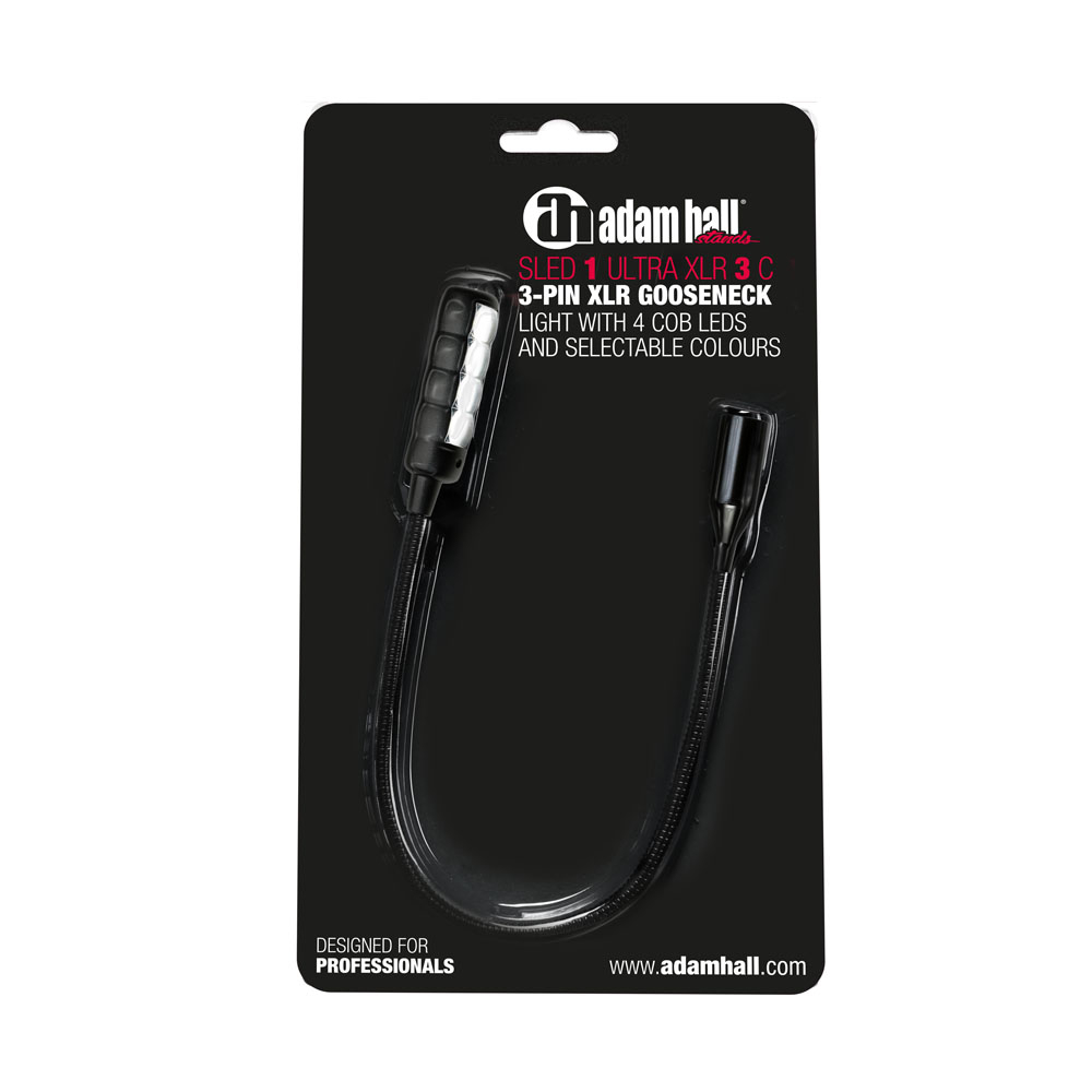 Το SLED 1 ULTRA XLR 3 C είναι ένα ματ μαύρο Gooseneck Light με 4 extra bright White COB LEDs και 3-pin male XLR connector, που λειτουργεί με αφιερωμένο 12V task light ή 48V phantom power.