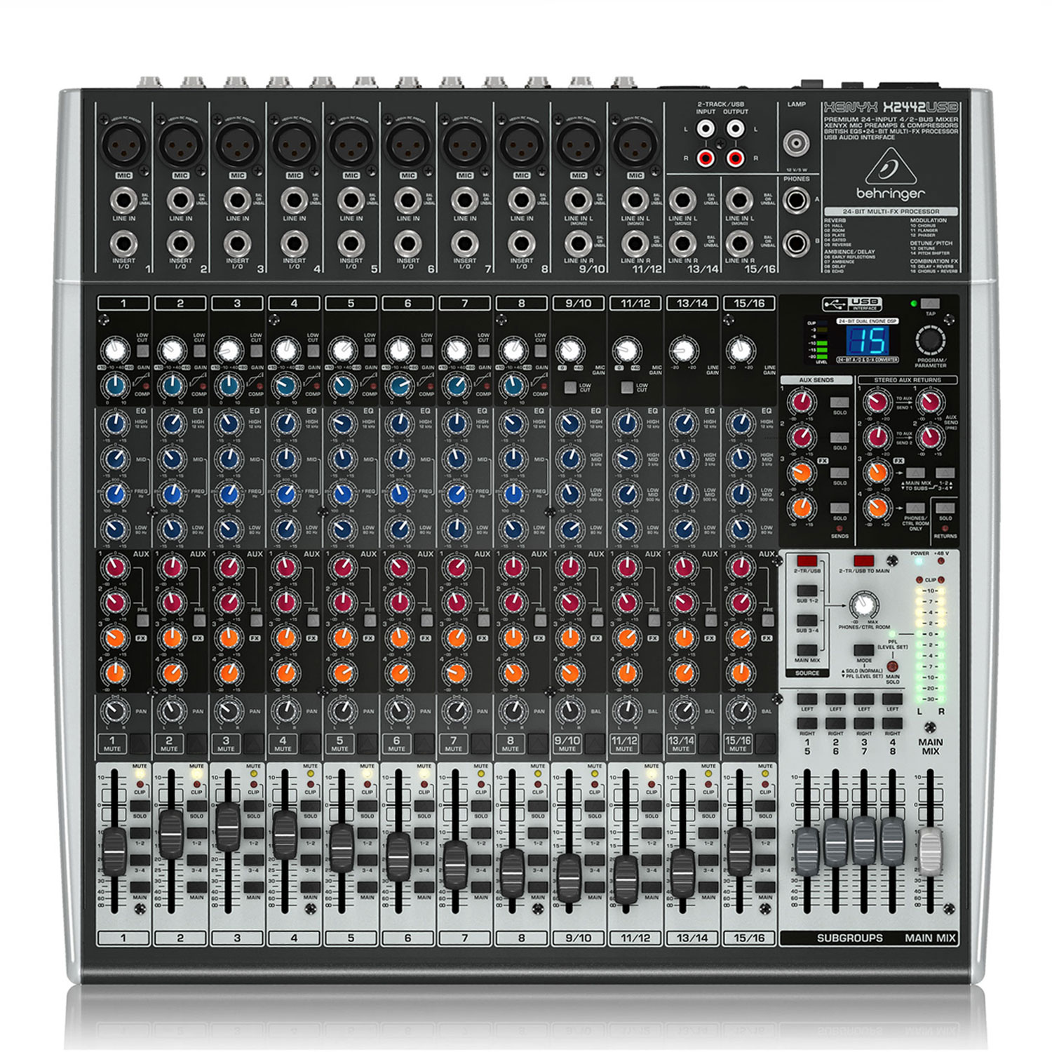 Premium 24-εισόδων 4/2-Bus μίκτης με προενισχυτές μικροφώνου XENYX και compressors, British EQ, 24-Bit Multi-FX Processor και USB/Audio Interface