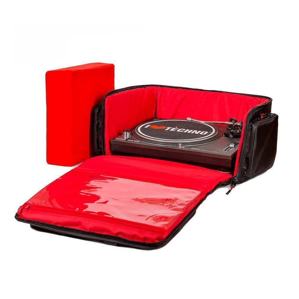 Η προστασία της συσκευής αναπαραγωγής, και ιδιαίτερα της πλάκας (πακάκι) από πτώση, παρέχεται από ένα ειδικό μαλακό χαλάκι, το οποίο πιέζεται σταθερά στη συσκευή αναπαραγωγής με χοντρές λωρίδες velcro, επιτρέποντας στο πικαπ να πιέζεται με ασφάλεια πάνω στην τσάντα.