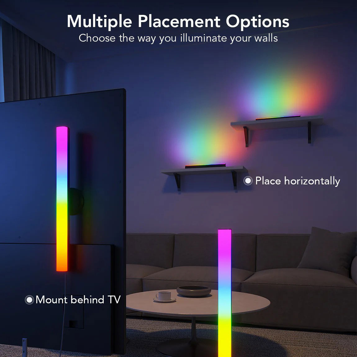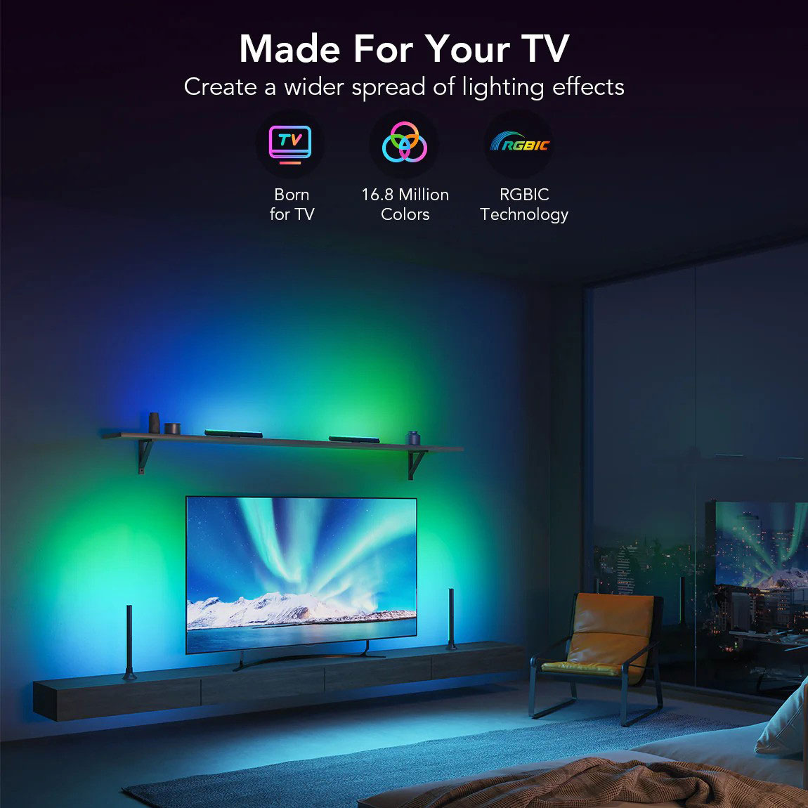 Ο σχεδιασμός τους είναι ειδικά μελετημένος για τηλεοράσεις 45 έως 70 ιντσών, εξασφαλίζοντας σωστή τοποθέτηση και ομοιόμορφη διάχυση φωτός. Η τεχνολογία screen sync ενισχύει την εμπειρία θέασης, κάνοντας κάθε ταινία, σειρά ή παιχνίδι πιο ζωντανό και εντυπωσιακό.