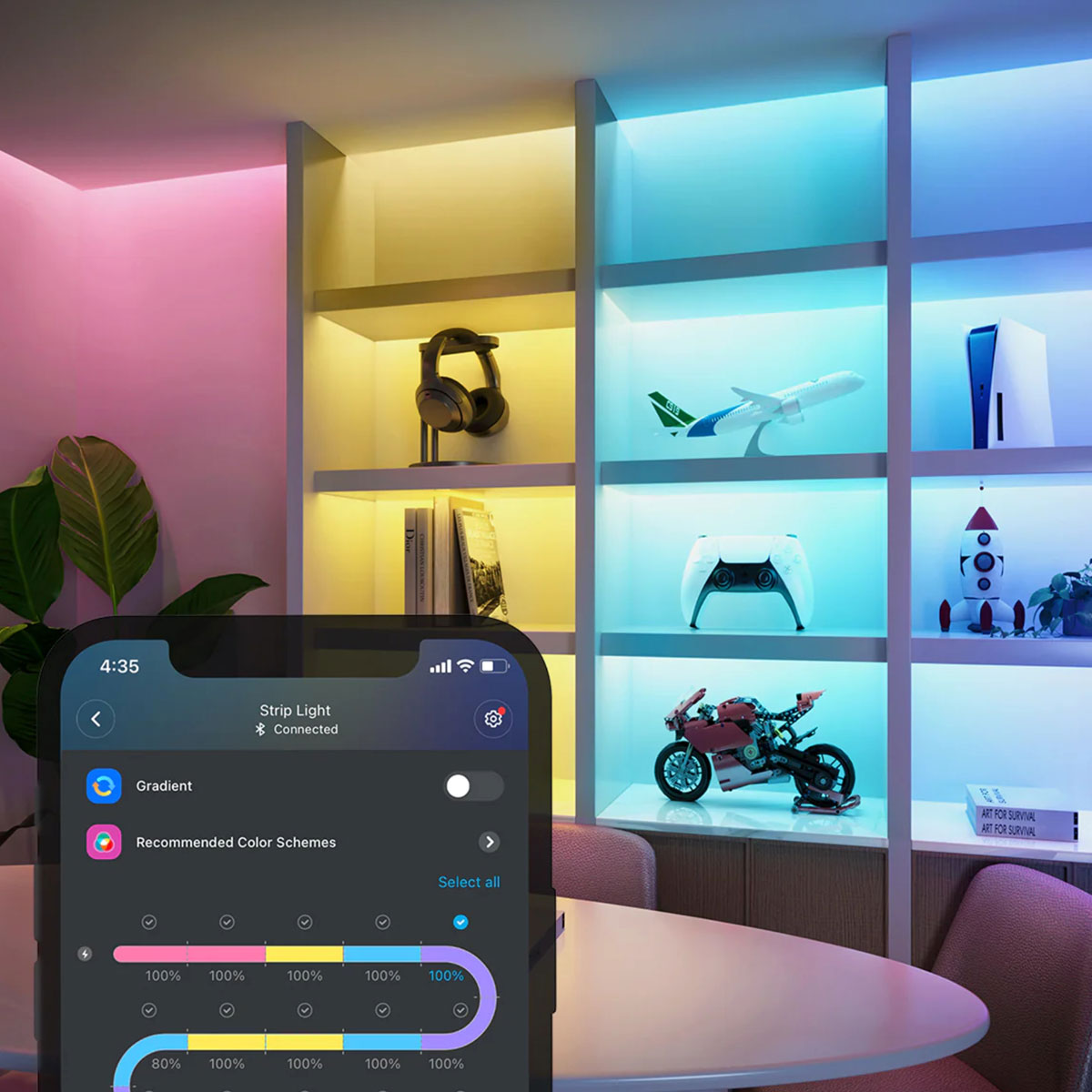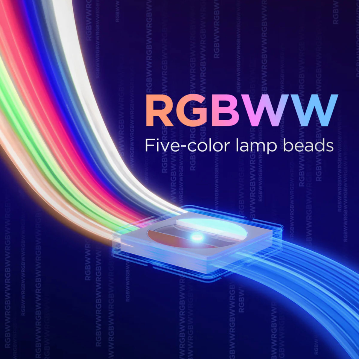 • Τεχνολογία 5-σε-1 RGBIC+: Ανεξάρτητα IC chips επιτρέπουν την ταυτόχρονη προβολή πολλαπλών χρωμάτων σε μία μόνο ταινία LED, με αναβαθμισμένες RGBWWIC χάντρες για πιο φυσικά χρώματα και υψηλή φωτεινότητα (2700K–6500K πραγματικό λευκό).