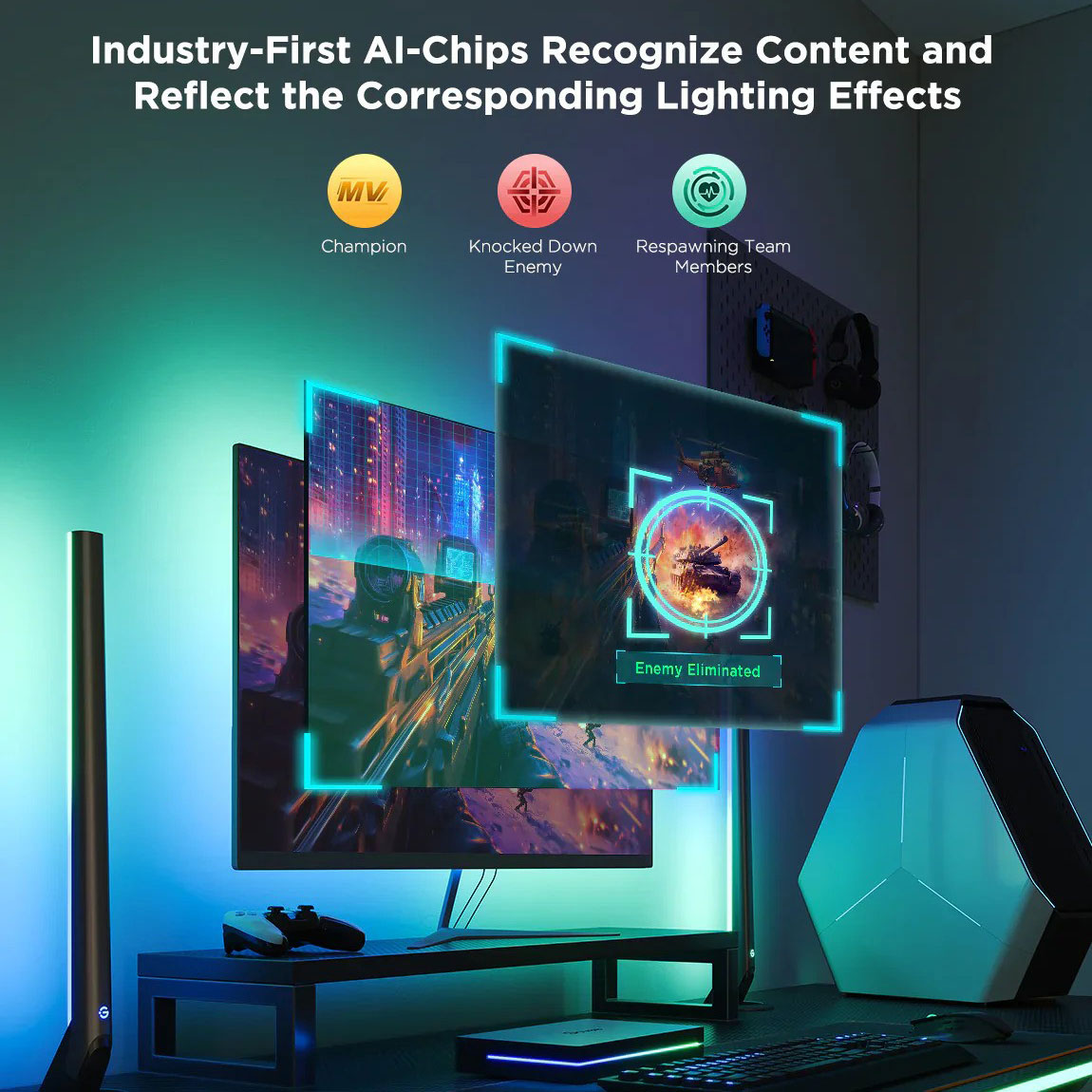 Το Govee H6604 AI Sync Box Kit 2 συγχρονίζει με απόλυτη ακρίβεια τον φωτισμό με την εικόνα της οθόνης σας, δημιουργώντας εντυπωσιακά εφέ που επεκτείνουν τη δράση πέρα από τα όρια της TV.