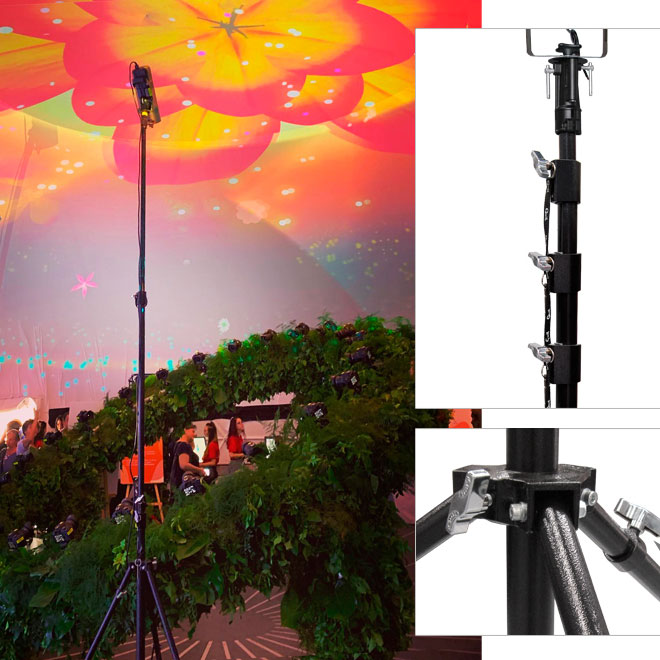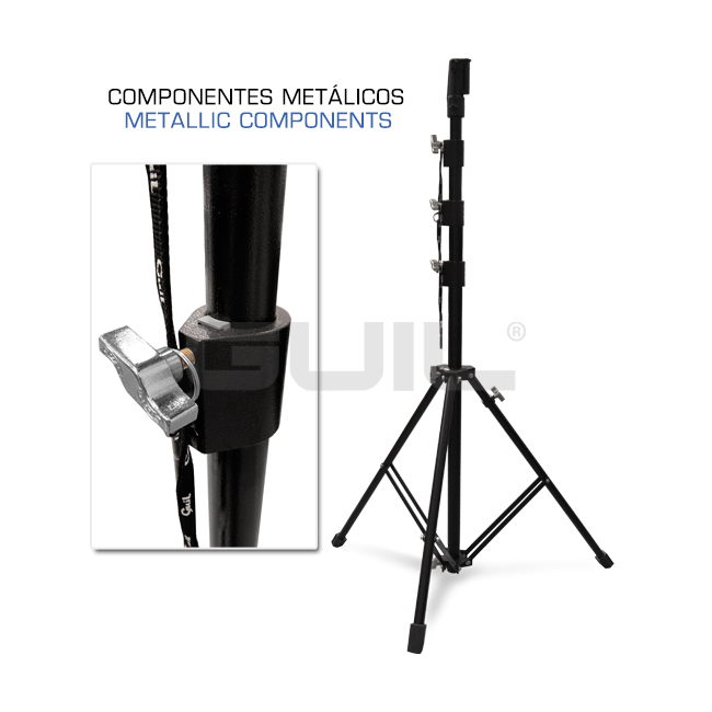 Η φορητή βάση φωτιστικών FC03 GUIL, είναι ειδικά σχεδιασμένη για χρήση σε studios, για κινηματογράφηση, και σε οποιοδήποτε συμβάν όπου τα φωτιστικά είναι απαραίτητο να τοποθετηθούν σε μέγιστο ύψος μέχρι 5m