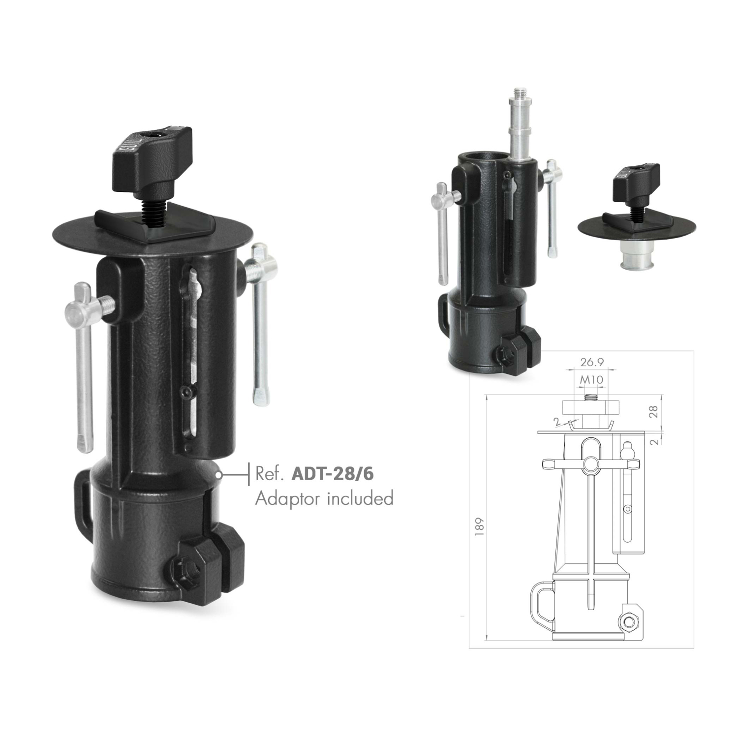 Περιλαμβάνει τέσσερα τηλεσκοπικά τμήματα ιστού και συνοδεύεται από προσαρμογέα πολλαπλής κεφαλής (κωδ. ADT-28/6), προσφέροντας ευελιξία στη ρύθμιση και τοποθέτηση του εξοπλισμού