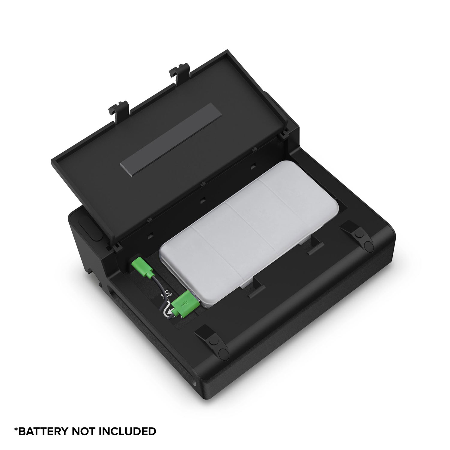 Η τροφοδοσία της MobileMix γίνεται με οποιαδήποτε επαναφορτιζόμενη USB μπαταρία που αγοράζεται ξεχωριστά και η οποία εγκαθίσταται στο κάτω μέρος της κονσόλας με ευκολία.
