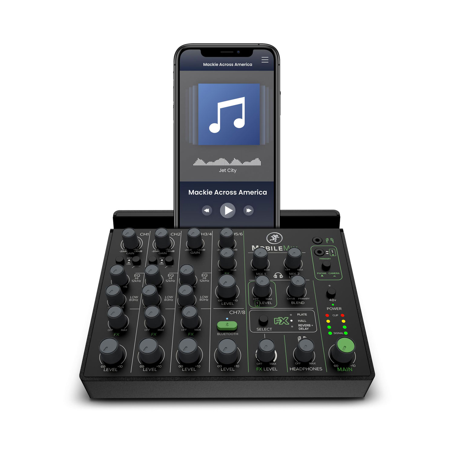 Η MobileMix έχει 8 κανάλια, δύο προενισχύσεις για μικρόφωνα και όργανα, Bluetooth με Mix Minus για τέλειες τηλεφωνικές συνομιλίες, στερεοφωνικές line εισόδους, EQ, εφέ και αποκλειστικές εξόδους για κάμερες και κινητά τηλέφωνα.
