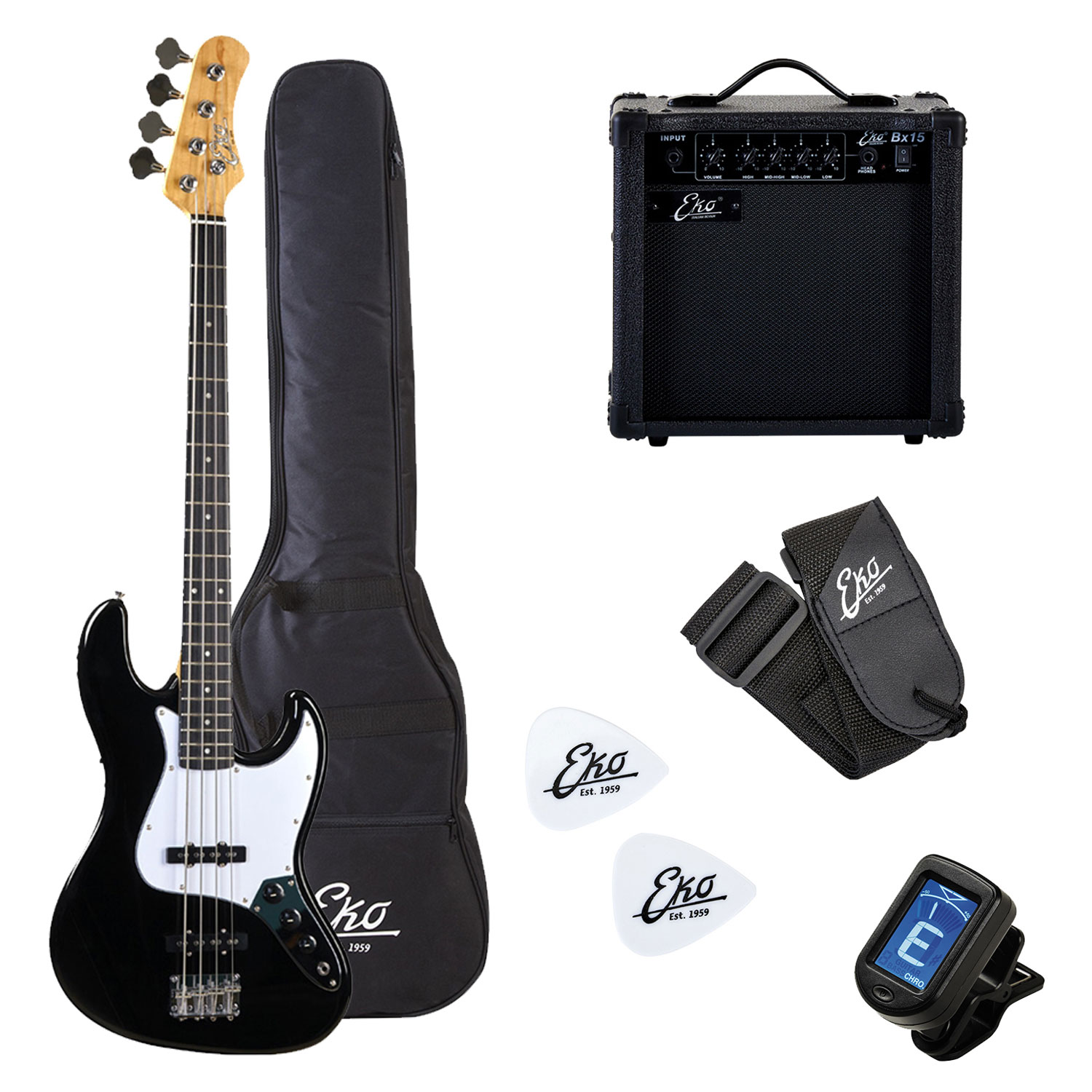 - Περιλαμβάνονται: Ηλεκτρικό μπάσο VJB-200, ενισχυτής Eko 15W, κουρδιστήρι, πένες, ανταλλακτικό σετ χορδών, μαλακή τσάντα και λουράκι