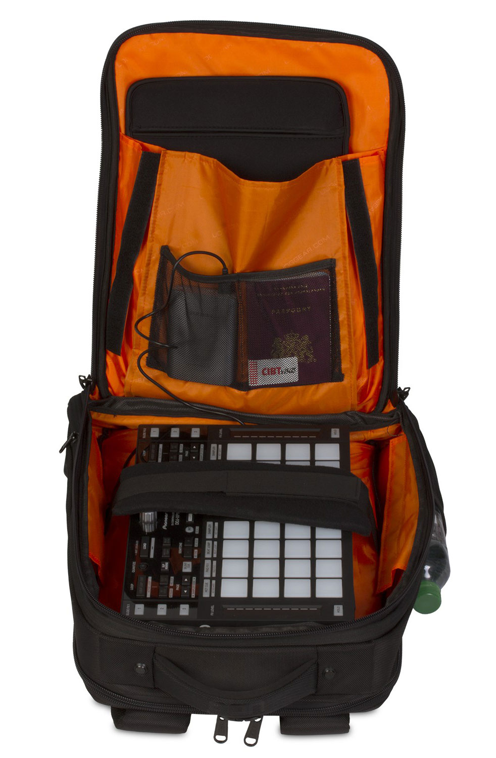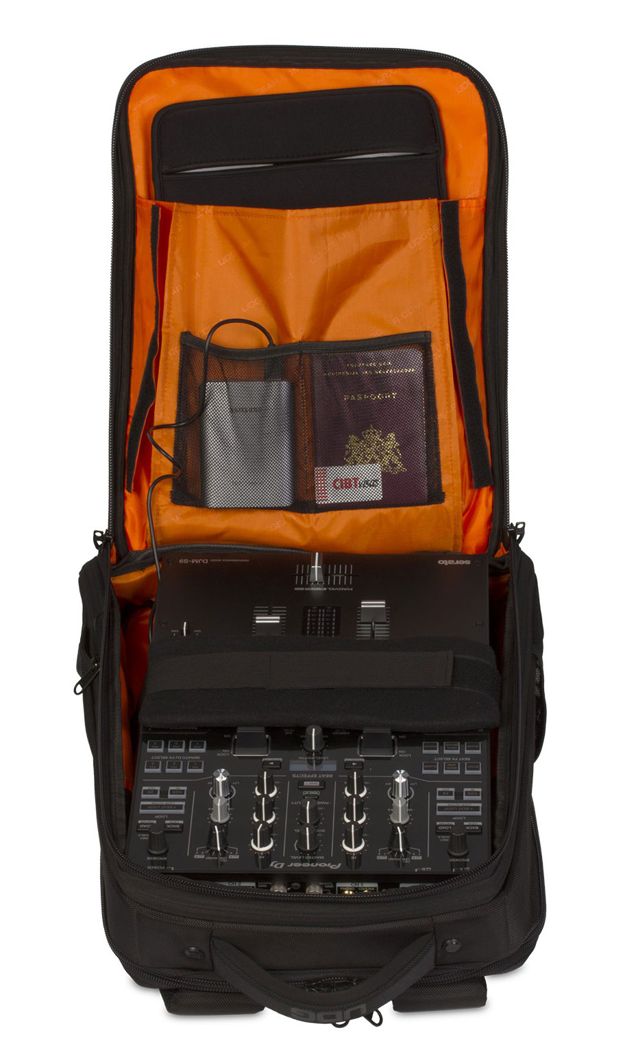 Κατασκευασμένο από υψηλής ποιότητας αδιάβροχο νάυλον, περιέχει ένα "διαμέρισμα" για φορητούς υπολογιστές 17 ιντσών με πρόσθετη θήκη iPad / tablet από νεοπρένιο. Το επεκτάσιμο κεντρικό διαμέρισμα με επένδυση με φερμουάρ, μπορεί να χωρέσει φορητό πικάπ Numark PT01 Scratch ή DJ mixer Pioneer DJM-S9 και μερικά βινύλια και ρούχα