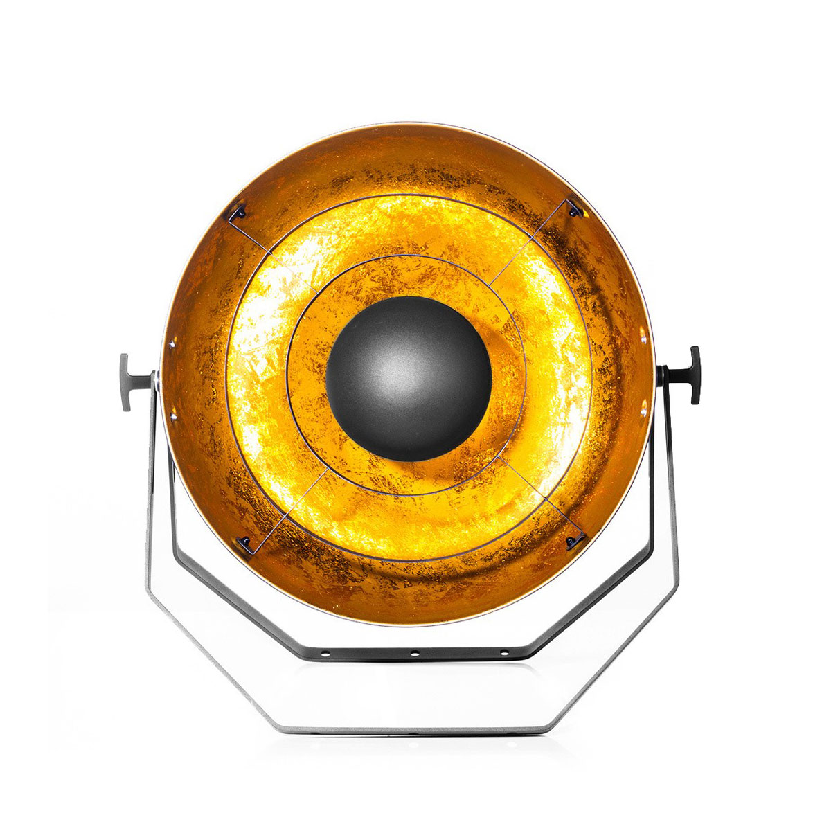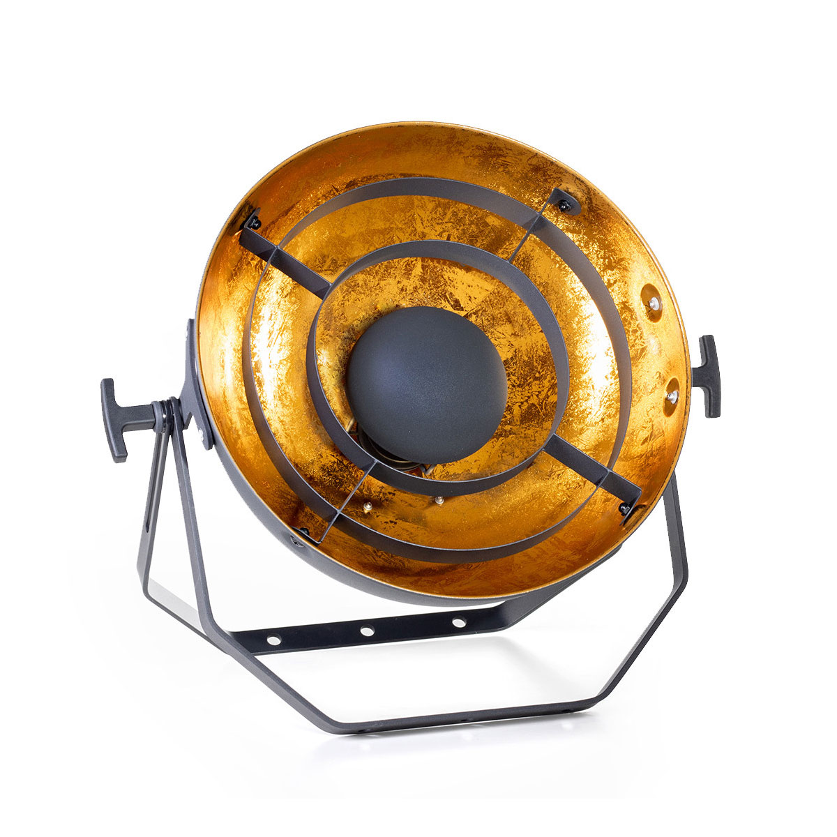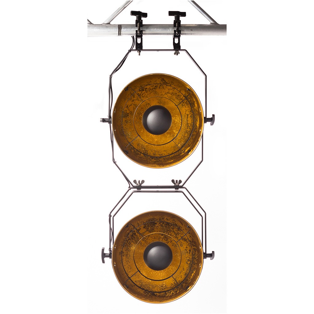 Decorative lighting fixture with a gold finish and two concentric black metal rings for a vintage look.