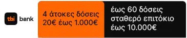 For purchases up to €10.000, choose from 3 to 60 monthly payments