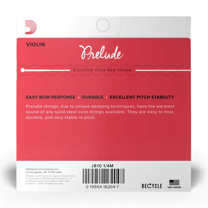 Prelude strings have the warmest sound available in an affordable, solid steel core string design. Unaffected by temperature and humidity changes, they have excellent bow response