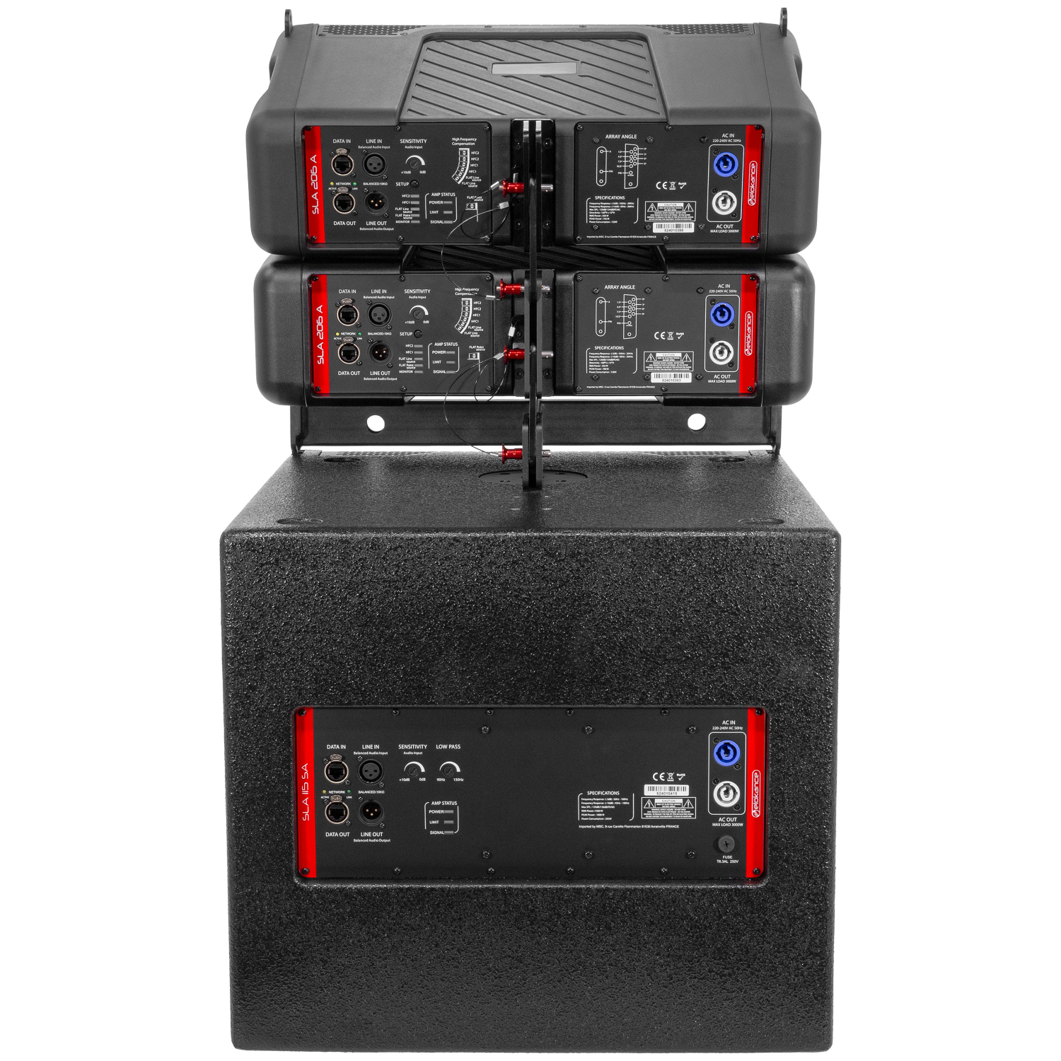 - Each SLA 206A line array module features dual 6.5” speakers, delivering 350W RMS and up to 700W peak power for wide, balanced sound coverage.