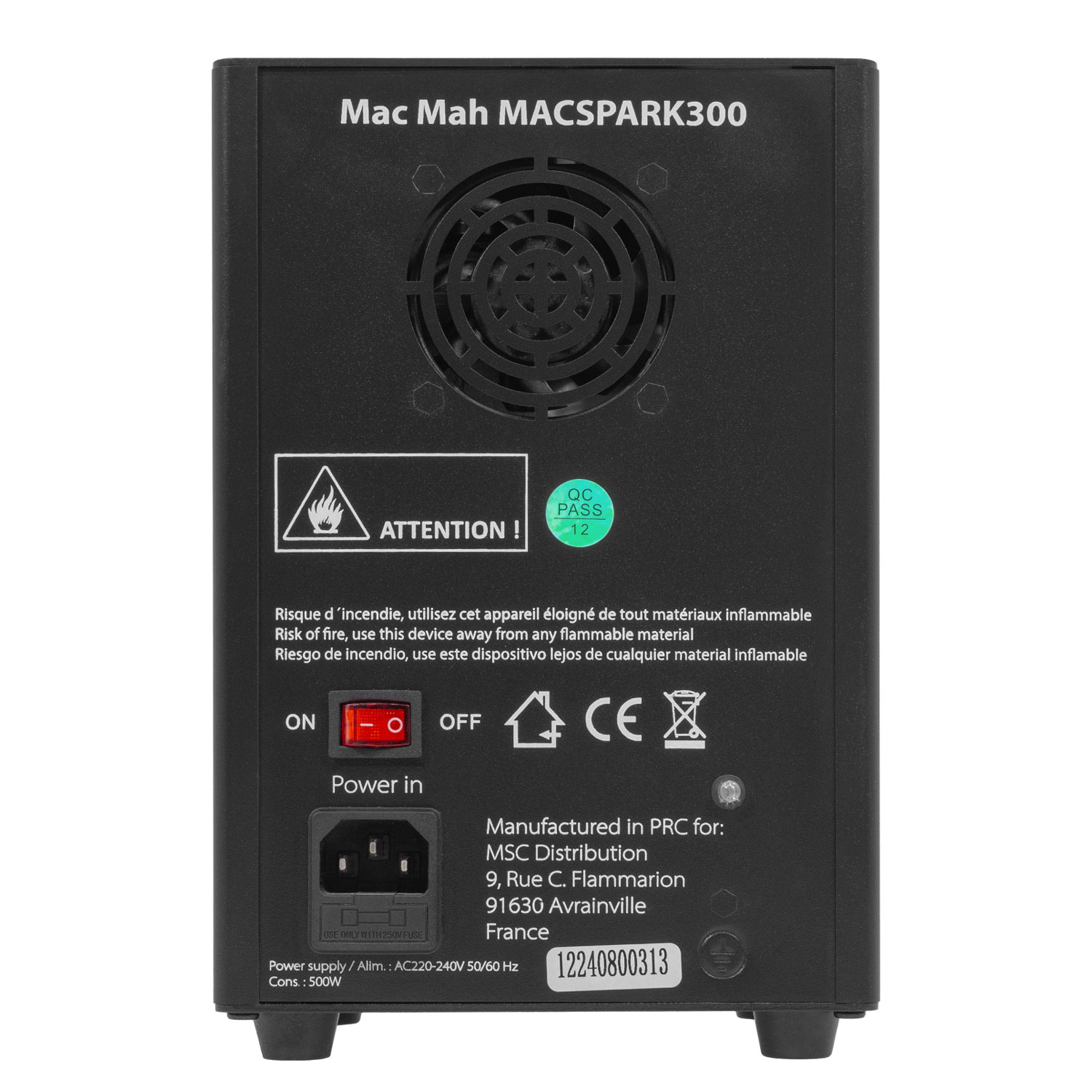 The Mac Mah MacSpark 300 is a cold spark machine designed for professional use in events and live performances.