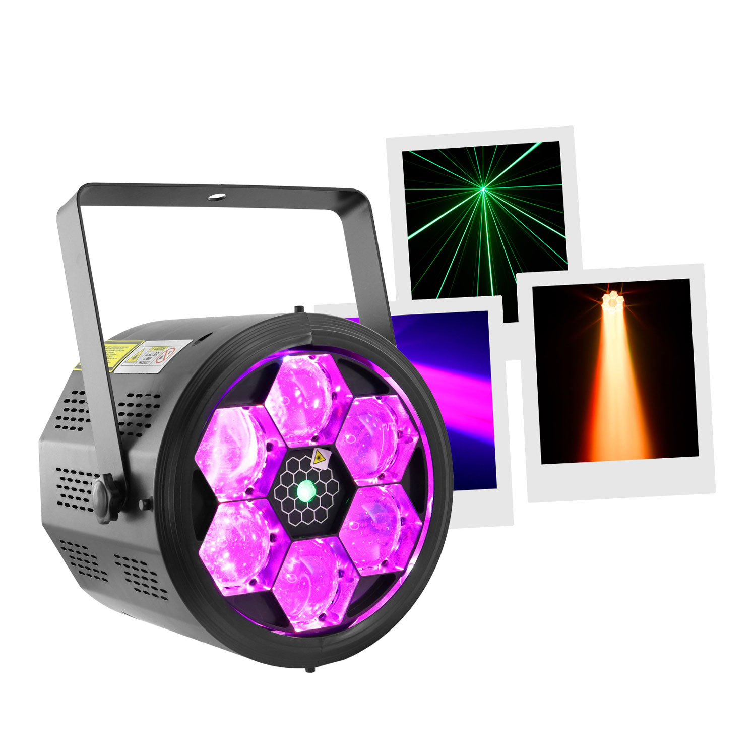 The BoomTone DJ BEE FXLZR is a multifunction lighting system that combines two impressive effects in one unit: