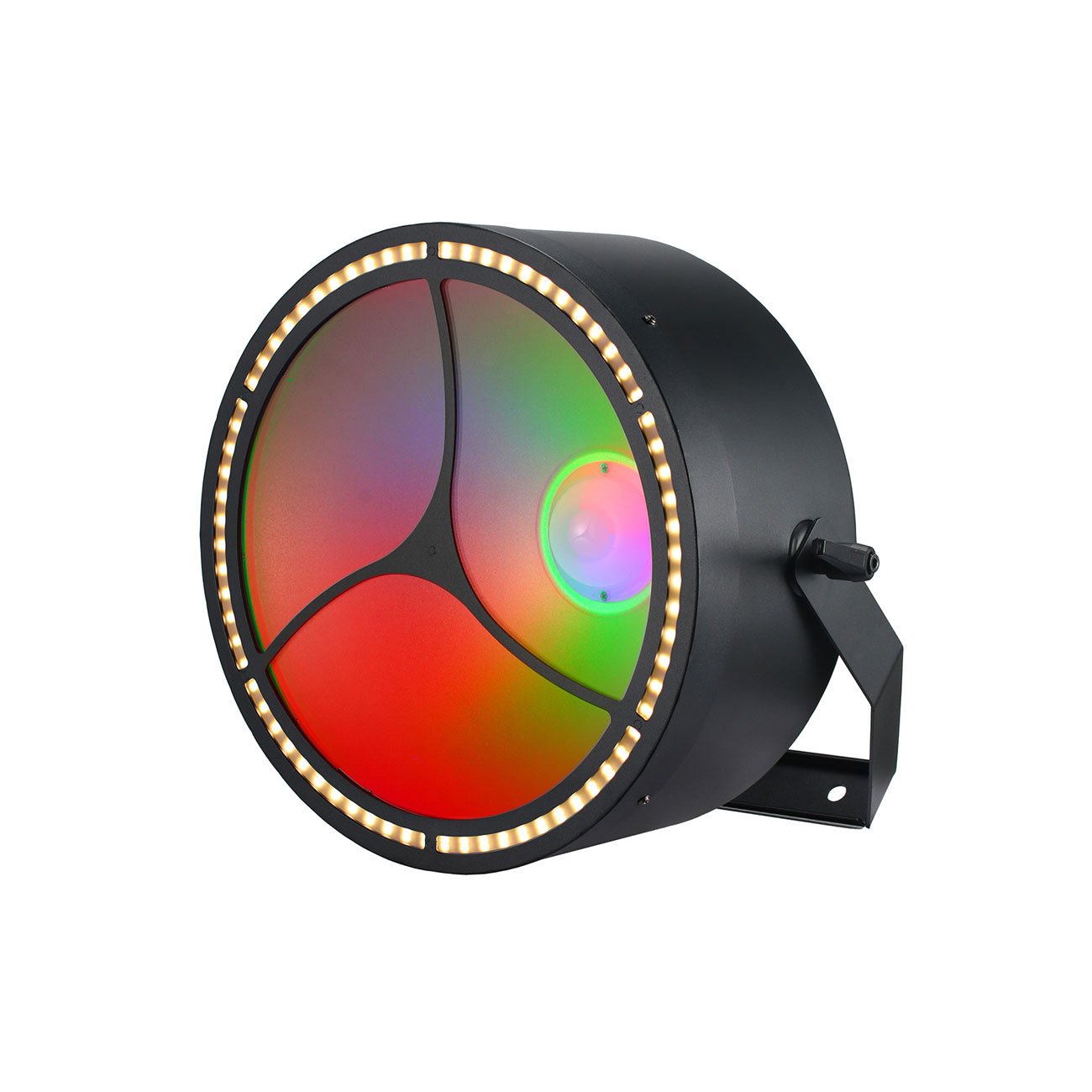 Featuring a 100W warm white central LED, complemented by 72 full-color RGB 5050 0.5W inner circle ring LEDs and 144 warm white 5730 0.2W outer circle ring LEDs. The fixture offers a light beam angle of 77° and a spot angle of 102°.