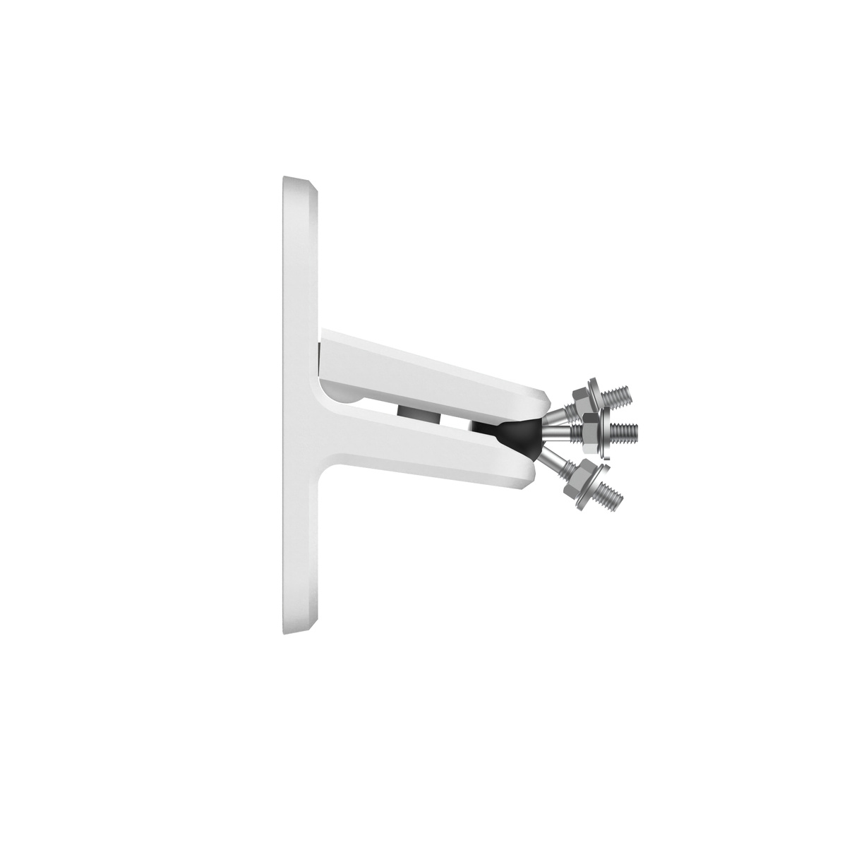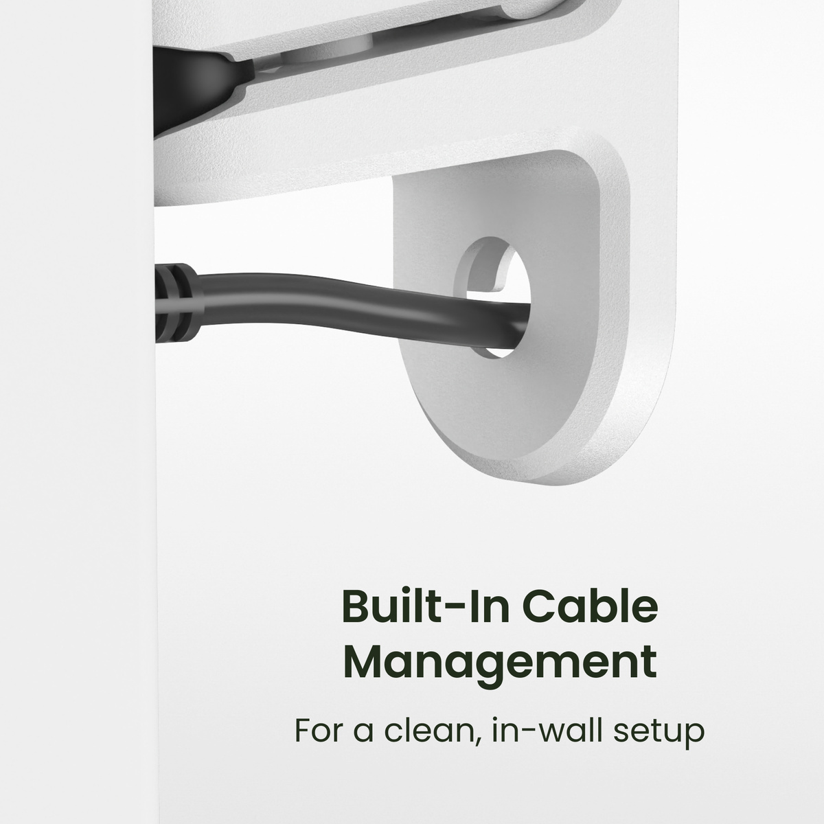 The integrated cable management pass-through in the wall plate allows speaker cables to be routed through the wall, delivering a clean and discreet installation. The two-piece design fully conceals the mounting hardware, allowing the mount to visually blend into the space.