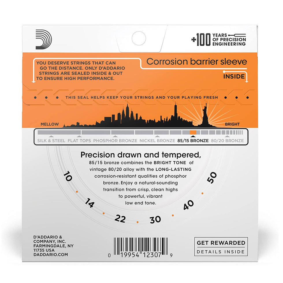 The 85/15 Bronze wrap wire is precision wound onto a carefully drawn, hexagonally shaped high carbon steel core, resulting in long lasting, bright sounding tone with excellent intonation.