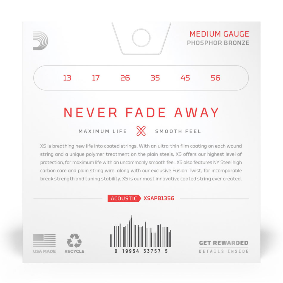 The XS Phosphor Bronze acoustic guitar strings, born from our greatest innovation in string technology, offer the longest lifespan of any D'Addario acoustic guitar string