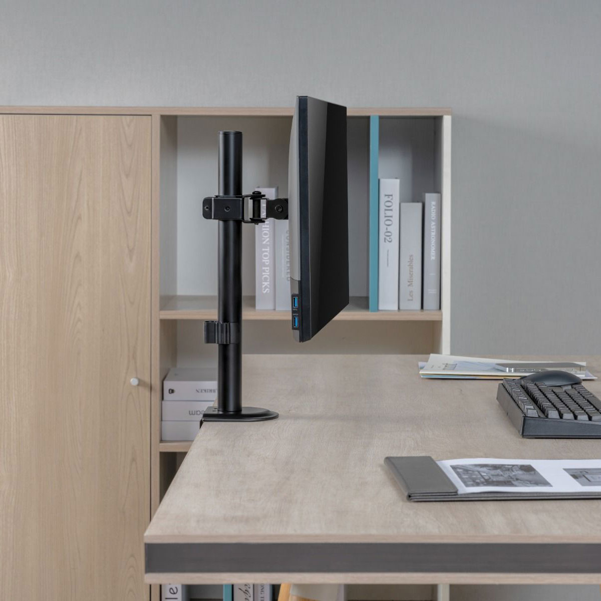 Its flexible design allows for multiple adjustments and viewing angles, with full rotation for portrait or landscape orientation. Both desk clamp and grommet mounting options are included, making it suitable for almost any workstation setup