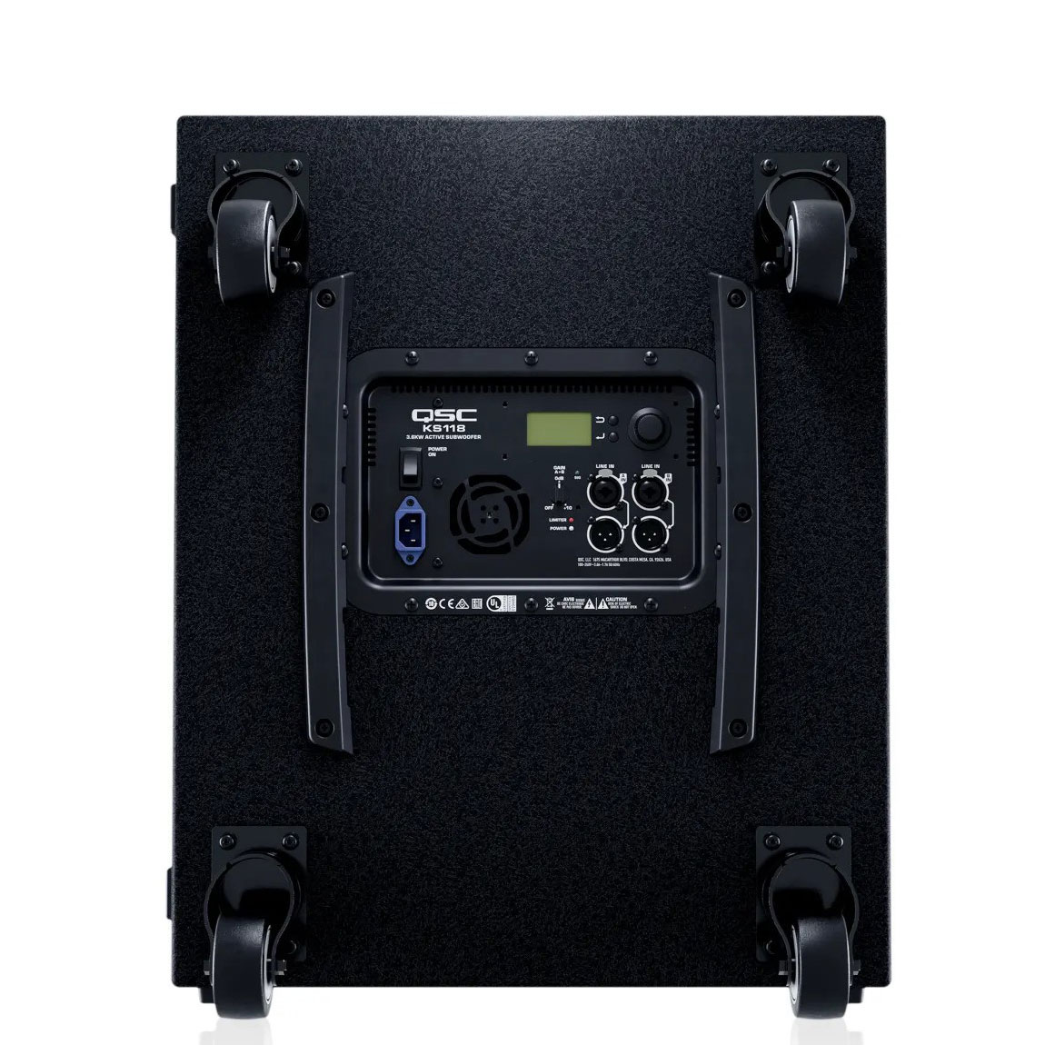 The QSC KS118 features a 3600W Class D amplifier, while its enclosure is constructed from birch plywood and includes high-quality integrated casters for easy transport.