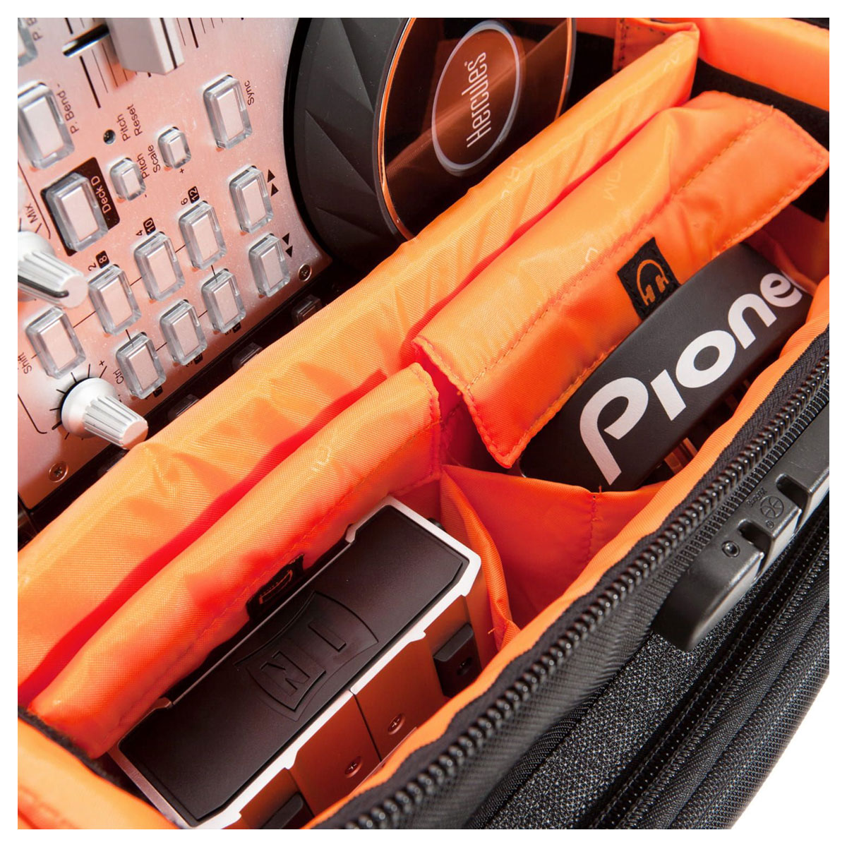 Κατασκευασμένη για DJ με συχνές πτήσεις, με χώρο για τον πολύτιμο ψηφιακό σας εξοπλισμό DJ, διαθέτει ένα μεγάλο κεντρικό διαμέρισμα, ένα αφαιρούμενο διαχωριστικό με ένα τμήμα διοργανωτή για τη κάρτα ήχου και τα ακουστικά σας.